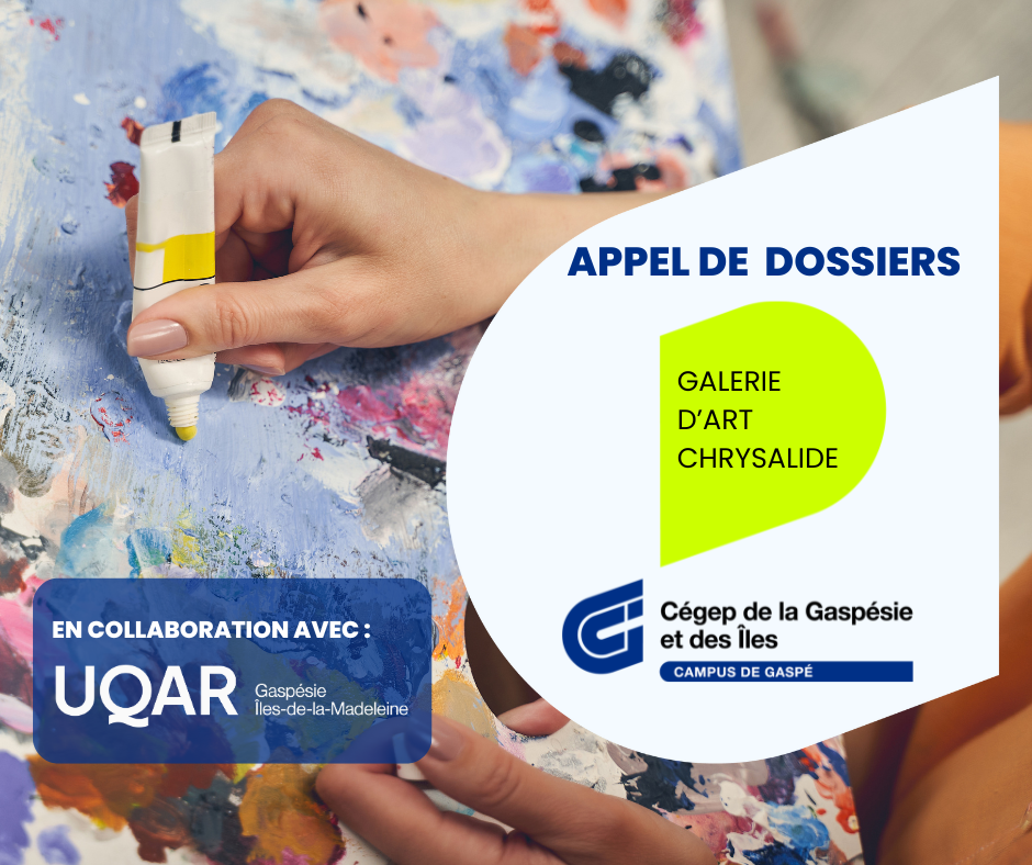 Chrysalide est un lieu d’exposition de créations actuelles en arts visuels et en métiers d’arts situé au campus de Gaspé du Cégep de la Gaspésie et des Îles. Cette galerie présente des œuvres d’artistes professionnelles et professionnels, d’artistes en voie de professionnalisation ainsi que d’étudiantes et étudiants d’Arts, lettres et communication ou d’autres programmes.